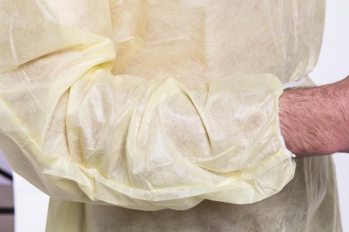 नॉनवॉवन डिस्पोजेबल अलगाव गाउन बायोडिग्रेडेबल इलास्टिक कफ के साथ तरल प्रतिरोधी गैर-बाँझ