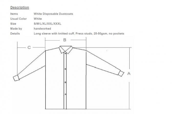 | प्रमुखता देना: | डिस्पोजेबल आगंतुक कोट,डिस्पोजेबल प्रयोगशाला कोट |