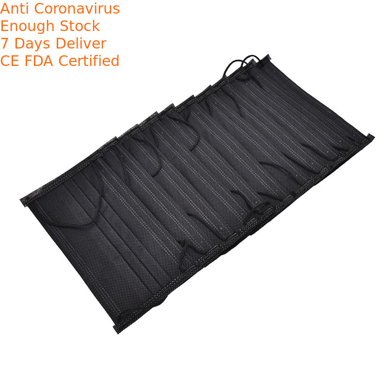 | name: | Black Earloop Mask | Material: | PP Nonwoven+Fliter+PP Nonwoven |